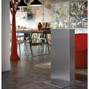 La chimenea de pie Tower tiene un aspecto de auténtico diseño. Presenta un cuerpo totalmente de acero inoxidable cepillado o de acero (negro mate o blanco brillante), rematado con dos paneles de vidrio ignífugo. Sus proporciones armoniosas y sus materiales contemporáneos combinarán con cualquier decoración vanguardista.