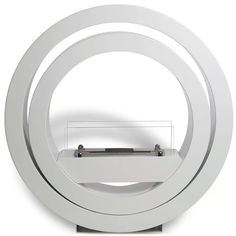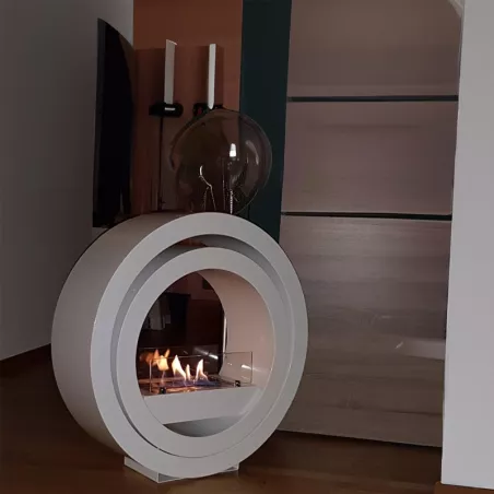 Ina Disponible en blanco o negro a su gusto, presenta un diseño curvo. Una base pequeña pero estable aloja el cuerpo de la chimenea, que presenta dos círculos entrelazados. Dentro de este cuerpo, un muelle metálico aloja el quemador. Izoa En algunos aspectos, se parece a la chimenea de etanol .