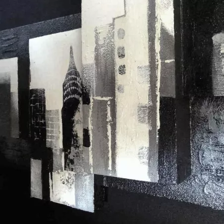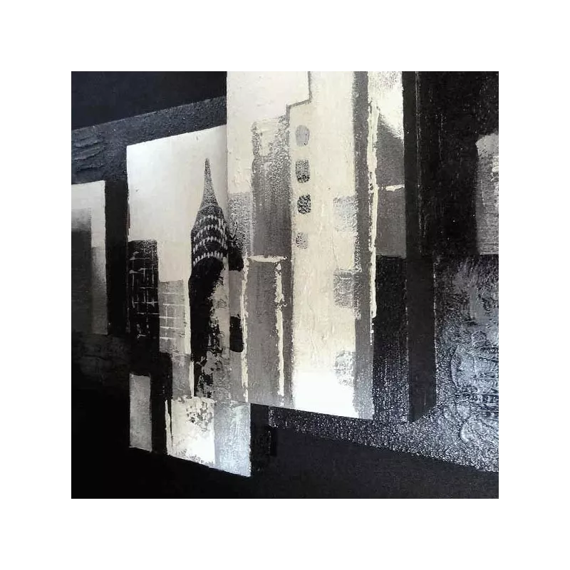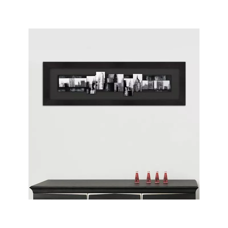 ¿Qué ciudad puede presumir de ser más gráfica que Nueva York? La Gran Manzana ha sido dibujada muchas veces, tanto por fotógrafos como por cineastas. El artista que está detrás de este innovador lienzo utiliza una técnica que actualmente está de moda en la pintura de diseño contemporánea: la pintura en 3D. En este caso, se han pegado varios paneles de diferentes tamaños, sobre los que se han pintado las siluetas de los edificios del horizonte neoyorquino.